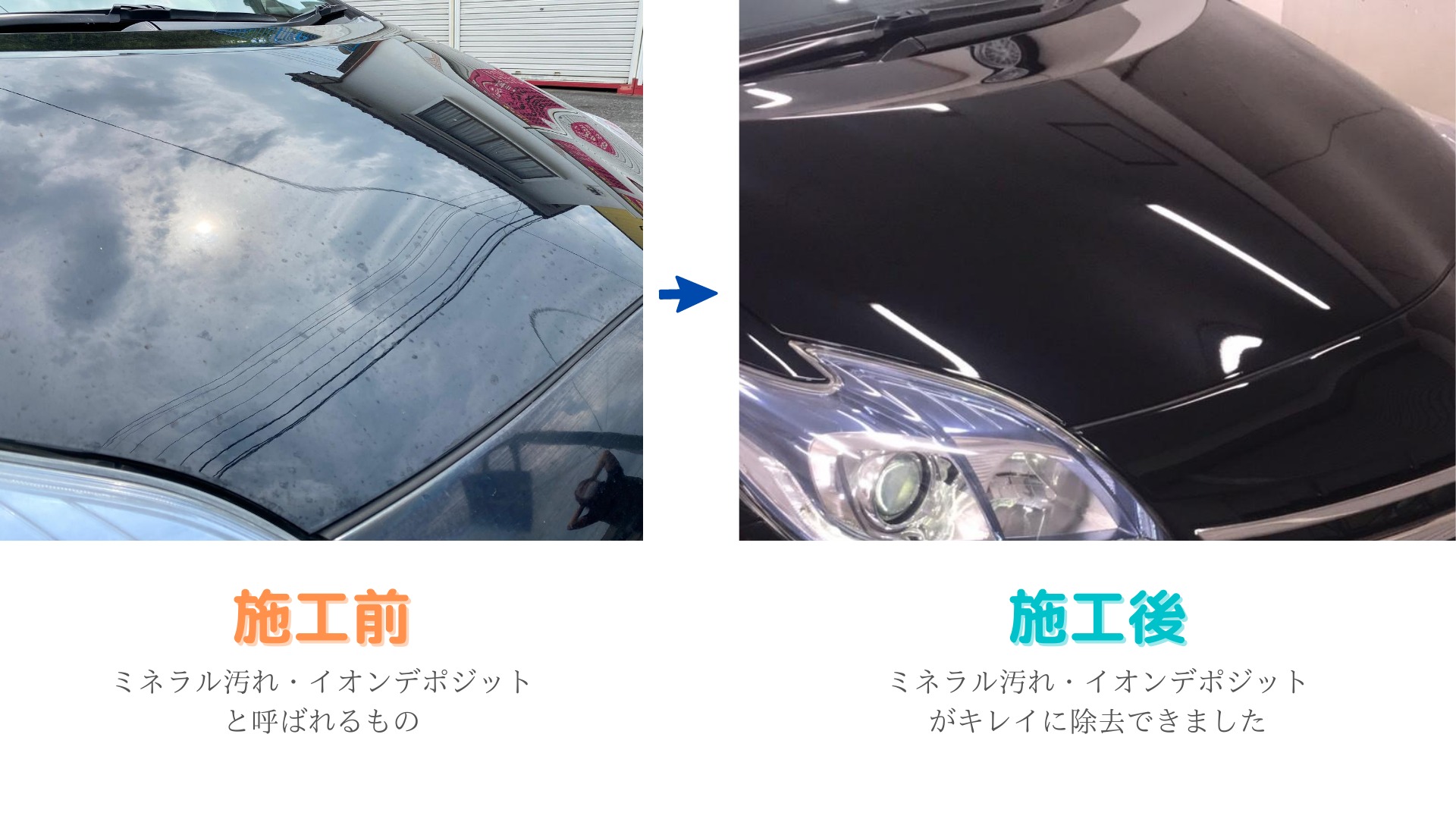当店ではミネラル汚れ除去だけではなく、豊富な経験をもとに様々な汚れを徹底的に除去し、卓越したコーティング技術で見違えるような輝きを取り戻します。